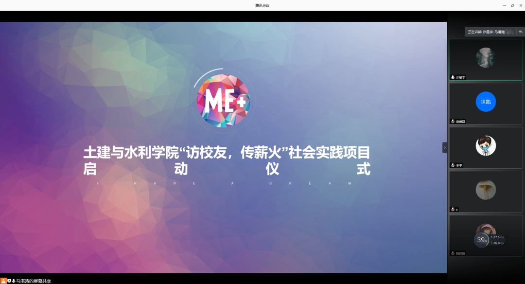 “访校友,传薪火” 社会实践活动启动仪式正式召开。此次会议由队长马湛涛主持,实践团队全体成员参加。