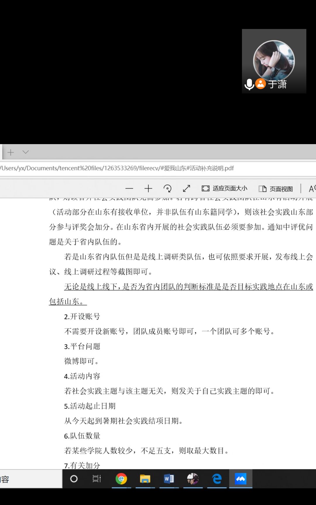 会议开始,于潇详细介绍了本次社会实践的主题、活动内容、宣传形式以及注意事项。 本次实践团队通过线上+线下结合的方式,到各队员所在家乡的旅行社进行调研,并调研探究与旅游相关的行业发展现状。