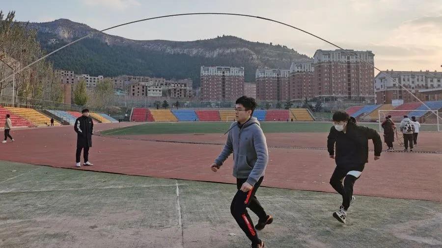 最后是八段锦,同学们跟着音乐在主席台前的跑道处完成了八段锦,帮助运动后放松身体和缓解疲劳。