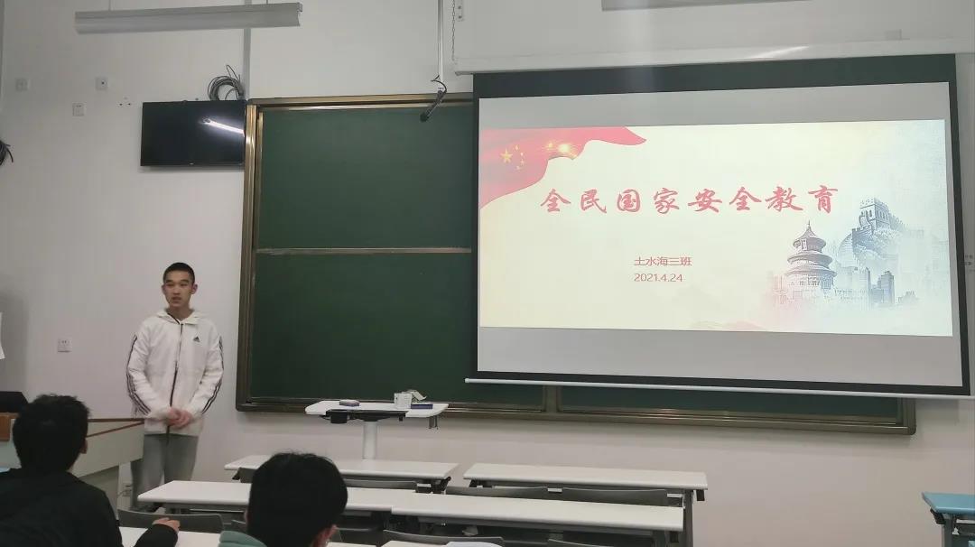 2020级土水海三班于兴隆山教学群楼C座召开“全民国家安全教育”主题团日活动。本次团日活动由班长张智棋主讲,土水海三班同学参与。