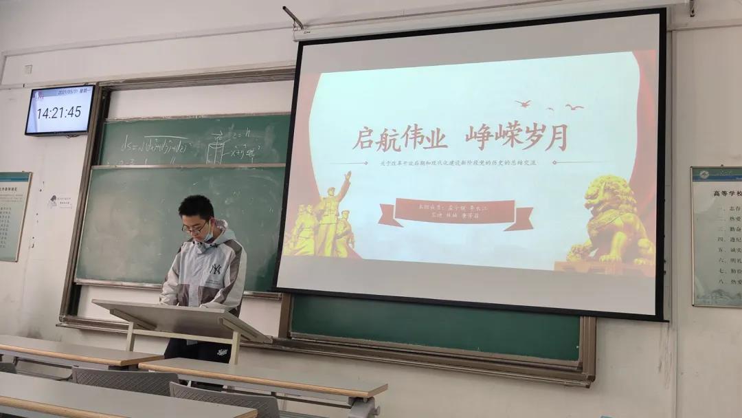 随后,唐芳菲所在的团小组以“启航伟业,峥嵘岁月”为主题向同学们介绍关于改革开放后期和现代化建设新阶段党的历史,在这段历史中,先谋后动的治国理政实践道路诞生;马克思主义在中国进一步传播发展;中国特色社会主义事业在国民经济、政治体制、精神文明建设等方面取得重大成就;党的十九大集中回答了改革开放以来党的全部理论和实践的主题,是重要的回顾和总结。