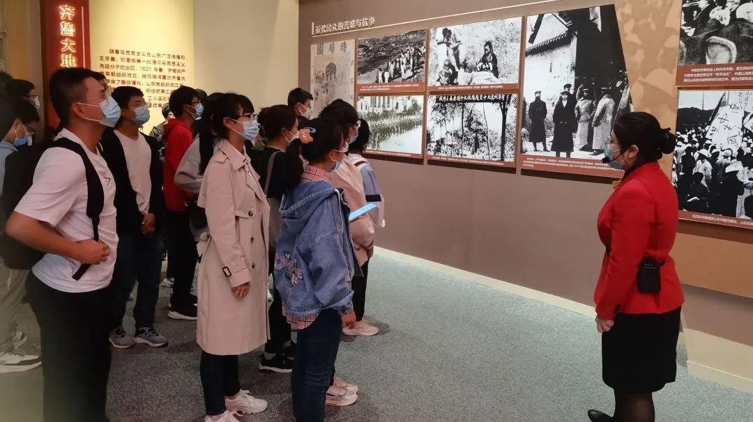 2021级土水海建筑工程一班全体同学在山东省博物馆开展了建党百年爱国主题教育活动。
