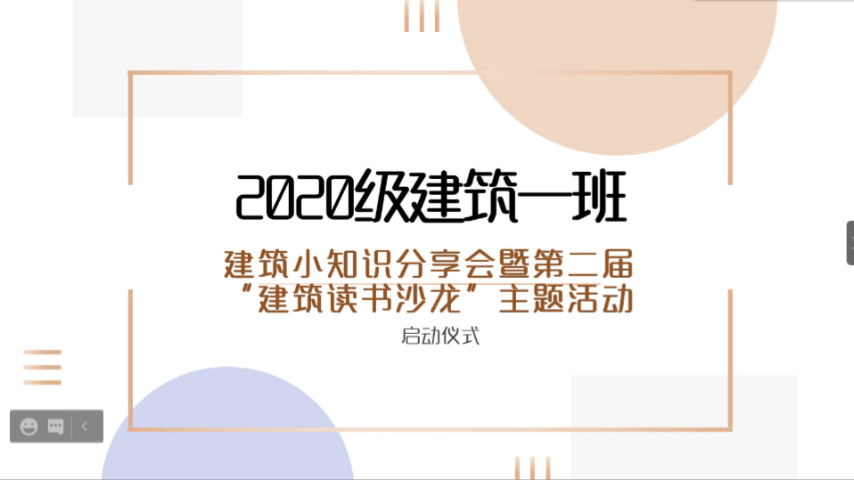 2020级建筑系一班于线上开展“建筑小知识分享会暨第二届建筑读书沙龙”主题活动启动仪式。本次活动由罗湘明主持,2020级建筑系一班全体成员参加。