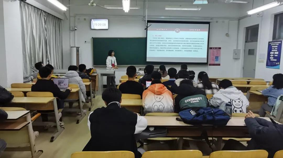 委员会关于全面加强新时代学生劳动教育的行动方案》进行介绍。孔婧以政策解读为基准,从制定背景、主体框架、考虑因素、目前困难问题和下一步工作打算五个部分对该政策进行了深度分析。这不仅让同学们了解了学校这一政策提出的背景,更让同学们反思自身存在的各种问题。大家纷纷表示会支持学校劳动政策,助力学校构建完整的劳动教育课程和考核体系。