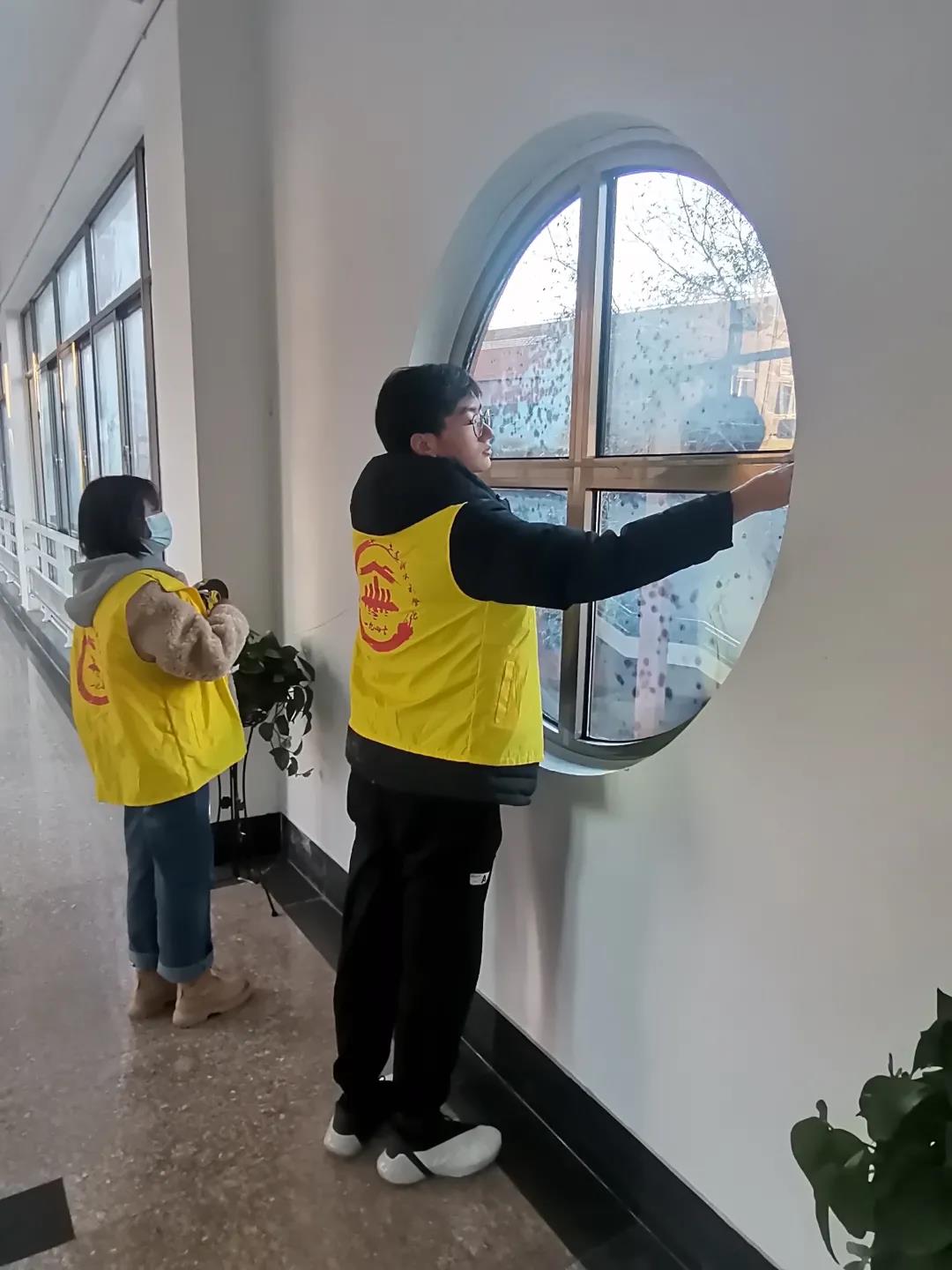 该护鸟行动以手拉手志愿服务活动为契机,旨在尽可能减少因窗户对鸟类所造成的视错觉引起的鸟类伤亡事件,为给后续活动提供真实可靠的数据,四名同学进行了实地测量。提前借得卷尺、工作服等物品后,小组成员到达连廊,依计划对每一面窗户的具体数据进行测量,并将数据进行记录与汇总。测量窗户高度时,窗户过高导致测量难以进行。郭佳组织同学分别行动,借凳子、递卷尺,数据采集工作顺利完成。测量结束后,同学们询问了保洁阿姨,获得了一定的经验和建议。接着,同学们根据所得数据进行了讨论和分析,制作出了贴纸放置的草图。