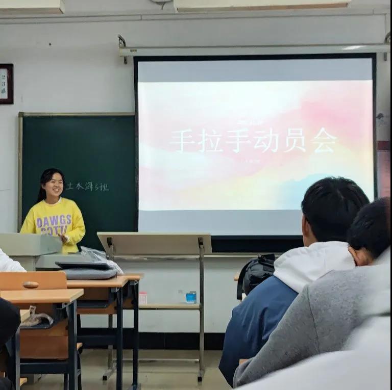 2021级水利系于1501教室开展班级手拉手志愿活动动员会。本次活动由团支书杨思莹主持,2021级水利系全体同学参加。
