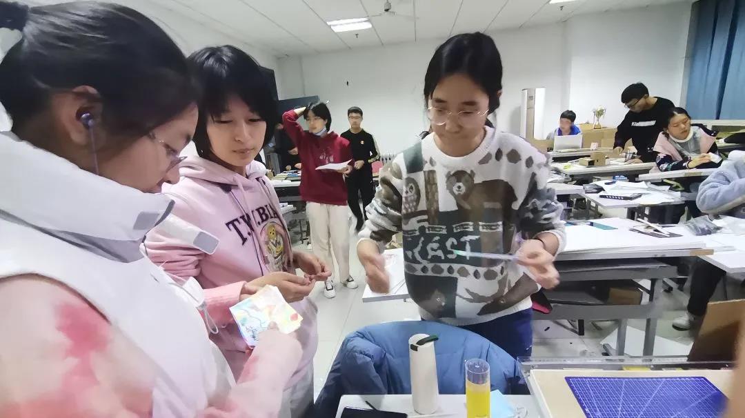 在党史活动的基础上,同学们收集了洪家楼小学的同学们手绘的棉棒盒封面,并在专业教室中对牛奶盒进行了加工,完成了手绘封面的拼贴。活动过程中,同学们积极参与,每人都认真加工收集到的牛奶盒,制作过程兼顾了棉棒盒美观性与实用性。