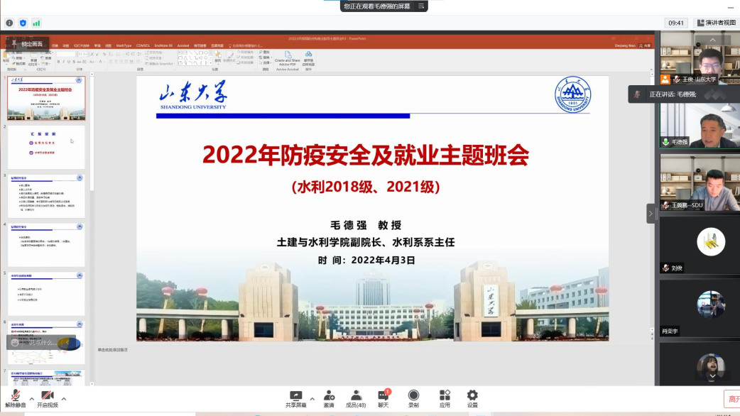 2018级、2021级水利系召开2022年防疫安全暨就业主题班会
