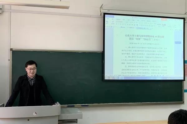 16级水利水电班于兴隆山校区教学群楼召开团支部大会,团支书刘胜琪主持本次会议,水利水电班全体同学参加了团会。