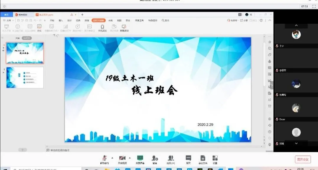 2019级土木一班开展第一次线上班会,班级全体成员参加会议。