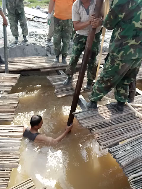 项目开工后,科研团队开始披星戴月、不分昼夜地工作,因为钻探、注浆工作必须提供精细的技术支持,密切关注各出水点的连通情况,所以即使是后半夜,工地也必须有人盯班。5月初,三道阻水帷幕已经完成,通过测量监测,减水量达到了1万立方米/天,但这与合同中的4.2万立方米/天减水量相差甚远,此时,经费已经花费过半,各种材料即将耗尽。华润集团开始担忧项目的成败问题,相关领导多次视察,无形中给科研团队施加了很大的压力。为了尽快解决企业的后顾之忧,李海燕教授在40度高温下,亲临现场指导。为了将引水管安放到最合适的位置,课题组中的一名党员同志,不畏寒冷,亲自下水安装管道,在水中连续摸索一上午,出水时冻得已嘴唇发紫。这些事迹,充分说明了以李海燕教授为领导的广西平南课题组坚韧意志,以及面对困难勇往直前的勇气,但成员们心中清楚,投入和成效并非完全的线性关系,阻水帷幕看似效果微弱,但的确是必不可少的,也是后续工作的基础,经过缓慢的量变过程,质变往往在最后的瞬间完成。但科研团内部也面临一大难题,阻水帷幕的效果证明,寻找Y01涌水点的关键通道并进行封堵是势在必行的,但问题是近半年来一直没有找到它的准确位置,接下来该采取什么措施呢?