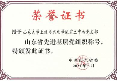 近日,中共山东省委下发《中共山东省委关于表彰山东省优秀共产党员、优秀党务工作者和先进基层党组织的决定》,手机比分 岩土中心党支部被授予“山东省先进基层党组织”荣誉称号。